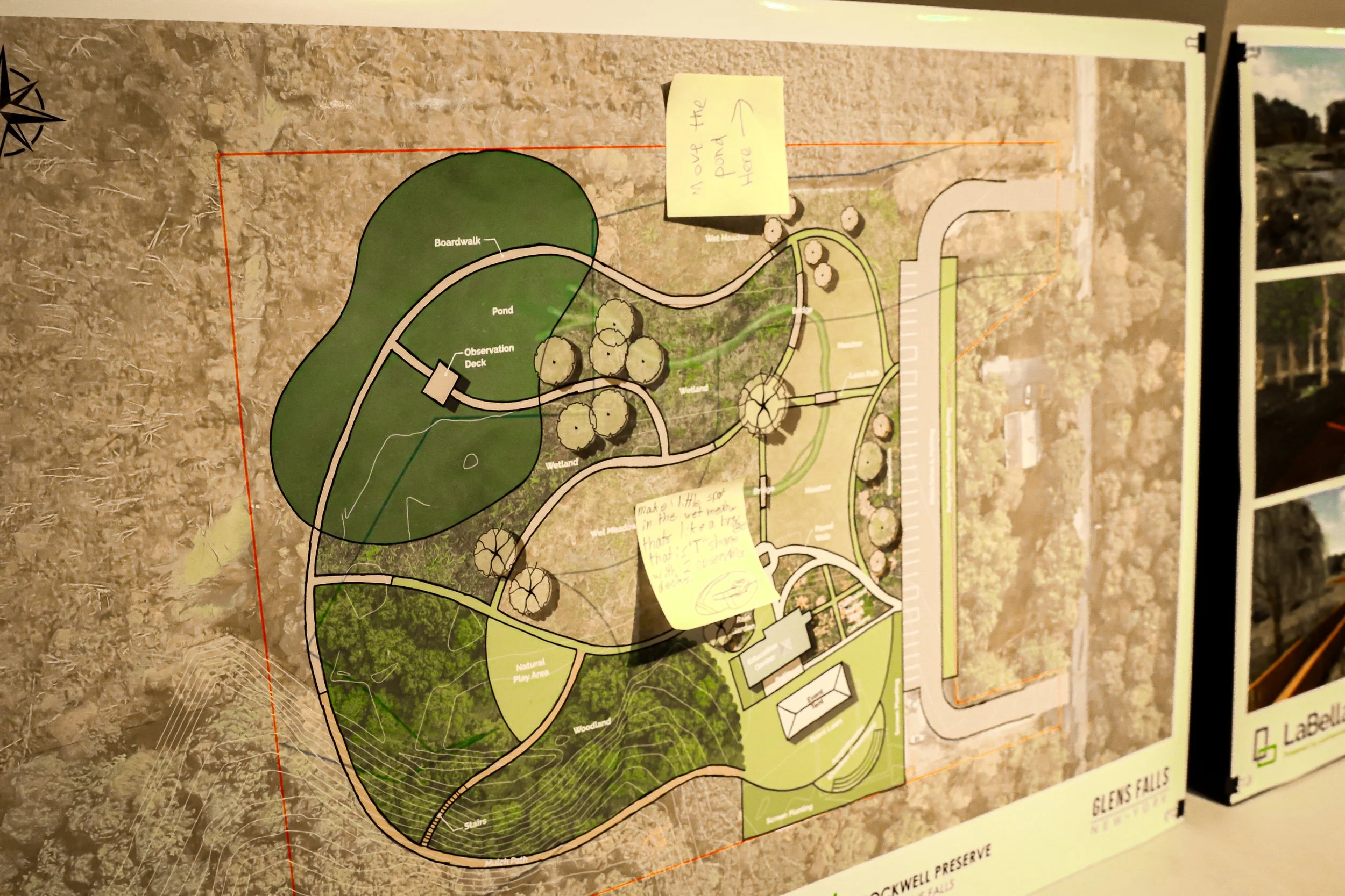 On May 24th, a public engagement meeting was held at the Charles R. Wood Theater in downtown Glens Falls. The event was promoted through the City’s website, the Glens Falls Chronicle, and social media. It began with an open house, where visual boards and a rendered video of the proposed site and building were displayed. A brief presentation followed, covering the project’s history, design concepts, branding efforts, and proposed next steps. A question-and-answer session provided an opportunity for community input, with attendees offering enthusiastic and constructive feedback. Around 30 community members attended, including the mayor of Glens Falls. Detailed meeting minutes were recorded to document the discussion.